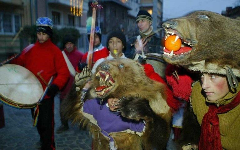 6- رقص الدببة في رومانيا؛ حيث يحتفل الرومانيون بالسنة الجديدة بهذه الطريقة تقديرًا للحيوانات، ويرتدون فيها أزياء الدببة، ويرقصون من منزل لآخر في محاولة منهم لإبقاء الشر بعيدًا.