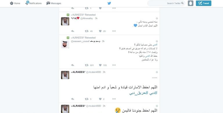 أما الريسي فقال في صفحته: "دبي قدمت اليوم درسًا مجانيًّا في كيفية إسعاد ضيوفها ورعايتهم والتعامل مع الحوادث.. شكرًا لرجال الأمن والدفاع المدني".