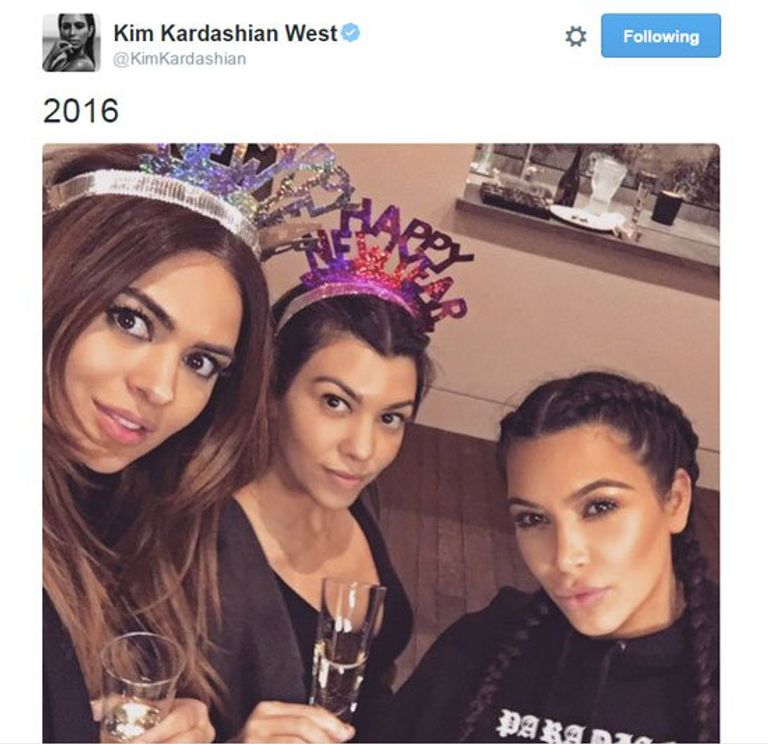 هنَّأت نجمة تلفزيون الواقع كيم كاردشيان، محبيها بالعام الميلادي الجديد 2016.