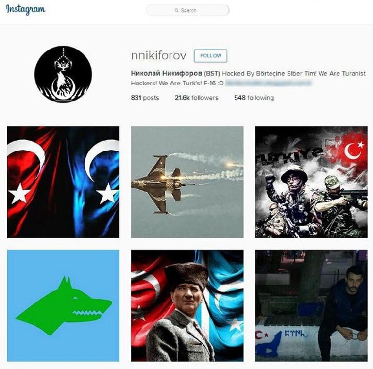 تعرض حساب وزير الاتصالات الروسي، نيكولاي نيكيفورو، على موقع إنستجرام للتواصل الاجتماعي يوم الأحد للحجب لفترة من الوقت في هجوم إلكتروني نفذه متسللون قدموا أنفسهم على أنهم جماعة نشطاء أتراك وعرضوا صورًا لطائرة حربية وأعلام تركيا.