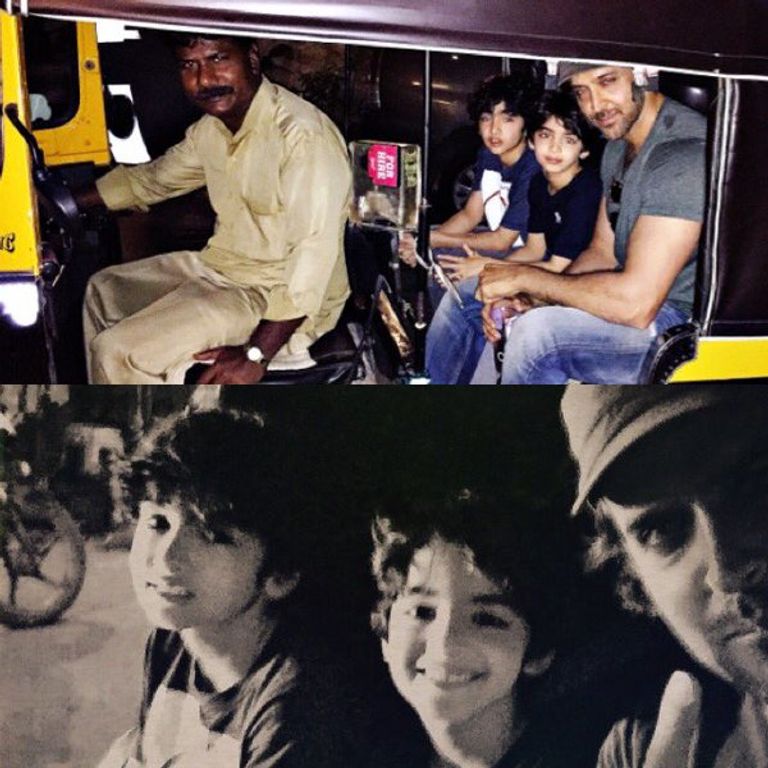 نشر نجم بوليوود العالمي هريثيك روشان صورة له مع ولديه داخل عربة "ريكاشة" هندية، وتُعرف في العالم العربي بـ"التوك توك"، وهم في طريقهم للمنزل.