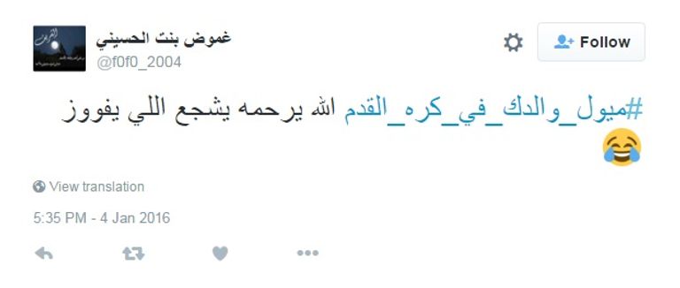 وعبر عدد من المغردين بشكل طريف عن تعارض انتماءاتهم الكروية مع آبائهم، وقالت مغردة تدعى "هلالية": "أهلاوي ويا ويلي لو شجعت حد ضد الأهلي" ، وأضافت "ميم": "ما شاء الله عليه يشجع أي فريق يلعب ضد النصر".