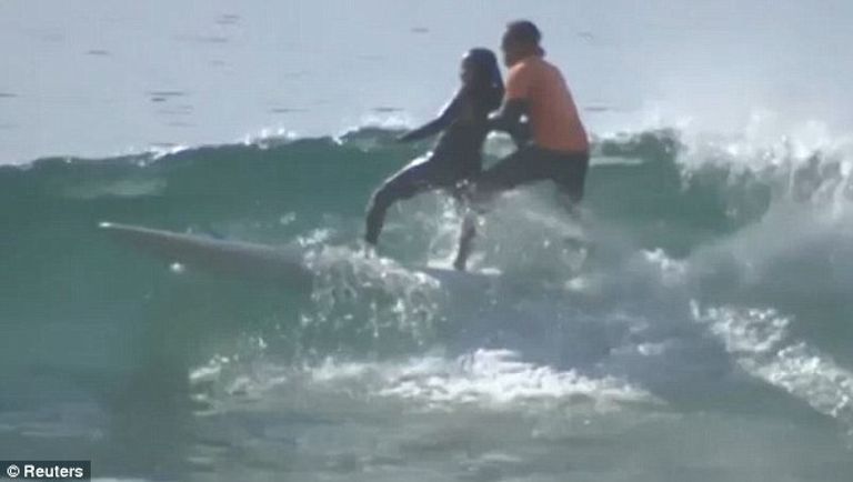 وأضافت: "لقد قررت اكشاف الإجابة على هذا التساؤل، هل يمكنني تعلم ركوب الأمواج؟".