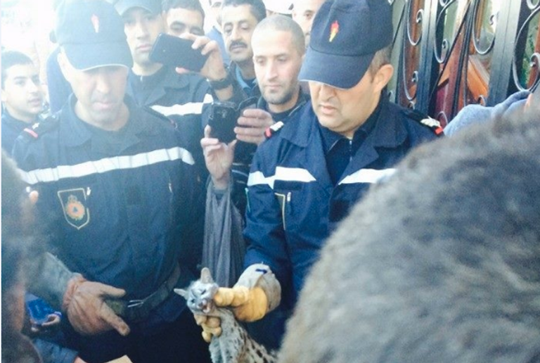 ونقلت صفحات مغربية على مواقع السوشيال ميديا، صورًا للقط النادر في قبضة رجال مصلحة الوقاية المدنية، بعد أن استنجد الأهالي بهم، خوفًا من القط، الذين اعتقدوا أنه مخلوق غريب، بسبب حجمه الصغير.