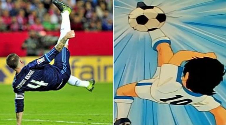 وقارنت صحيفة "ماركا" الإسبانية عبر موقعها الإلكتروني، واقعة إصابة راموس بما حدث للكابتن ماجد بعد إحرازه لهدف من نفس الوضعية، ليصاب هو الآخر في كتفه الأيسر.