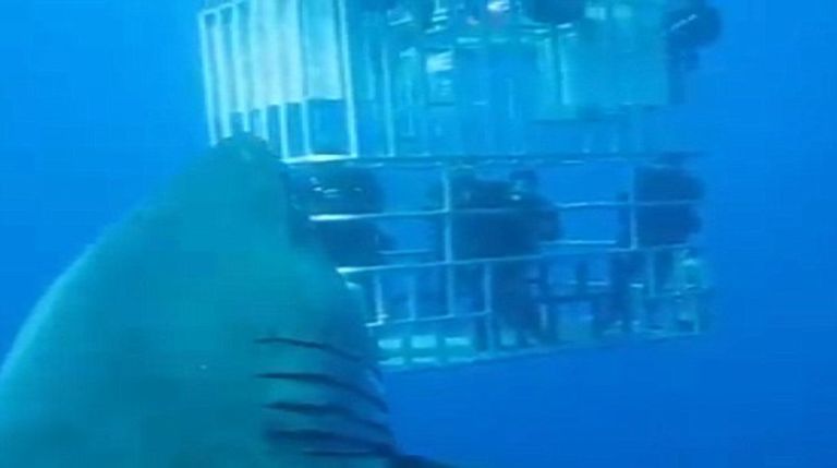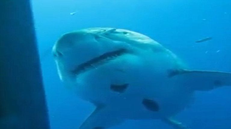 ويظهر الفيديو توجه ديب بلو "السمكة" نحو الغواصين في قفصهم المحمي تحت الماء في المكسيك، وهي تسبح بجانبهم، وتضمن الفيديو لحظة اقتراب سمكة القرش من المصور ببطء، وتمكنه من التقاط صور لأسنانها الضخمة بشكل سريع.