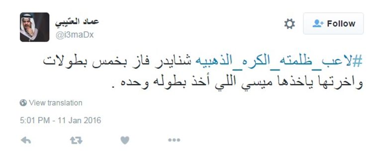 وعبر عدد من المغردين عن دهشتهم لعدم فوز بعض اللاعبين بالجائزة رغم أدائهم المبهر، فقال مغرد يدعى عماد العتيبي: "شنايدر فاز بخمس بطولات وآخرتها ياخذها ميسي اللي أخذ بطولة واحدة" ، في إشارة لعدم ترشيح ويسلي شنايدر لاعب منتخب هولندا وإنتر ميلانو الإيطالي للجائزة في 2010 .