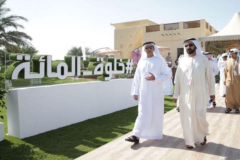 حضر الشيخ محمد بن راشد آل مكتوم نائب رئيس دولة الإمارات، رئيس مجلس الوزراء حاكم دبي صباح اليوم " خلوة المائة " التي تضم أهم مائة شخصية وطنية معنية بعام القراءة، وذلك لوضع إطار عام ومناقشة مبادرات وطنية دائمة تعمل على ترسيخ القراءة عادة مجتمعية دائمة في دولة الإمارات العربية المتحدة وفي الأجيال القادمة.