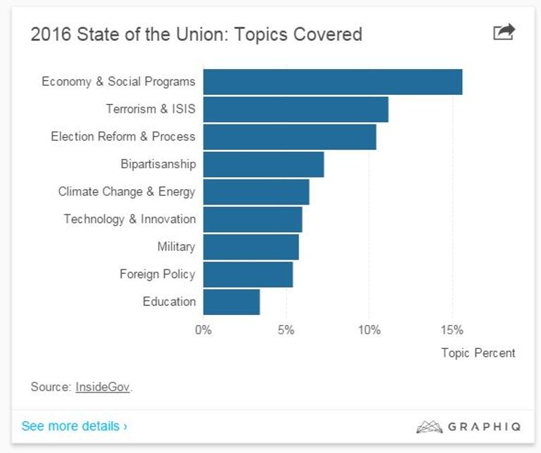 وفيما يلي تحليل بالأرقام وأبرز الكلمات التي وردت في خطاب الرئيس الأمريكي السنوي السابع والأخير أمام الكونجرس الذي سلط الضوء خلاله على إرثه، وأشار إلى الطريق الذي تحتاج البلاد للمضي فيه من أجل التقدم المستمر، وتصادف أنه كان أقصر خطاباته، وأقل بقليل من خطابات الأعوام السابقة، بحسب مواقع أمريكية.