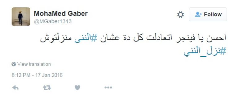 مستخدمو موقع تويتر في مصر طالبوا أرسين فينجر مدرب أرسنال بإشراك اللاعب المصري محمد النني في أول مباراة له بقميص "الجانرز"