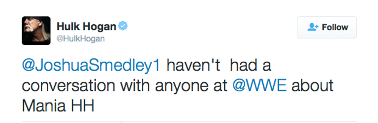 بعض خبراء المصارعة الحرة والقائمين على تغطية أخبارها ومنهم "برايان الفاريز وديف ميلتزر" اقترحوا إيجاد زاوية للتمهيد لهوجان لإشراكه في بطولة راسلمانيا ٣٢، لكن يبدو أن هوجان لا يعرف شيئا عن هذه الاقتراحات، عندما قال عبر تويتر: "لا، فأنا لم أعد أعمل في WWE.. أنا آسف، لم يحدث حوار مع أي شخص مسؤول".