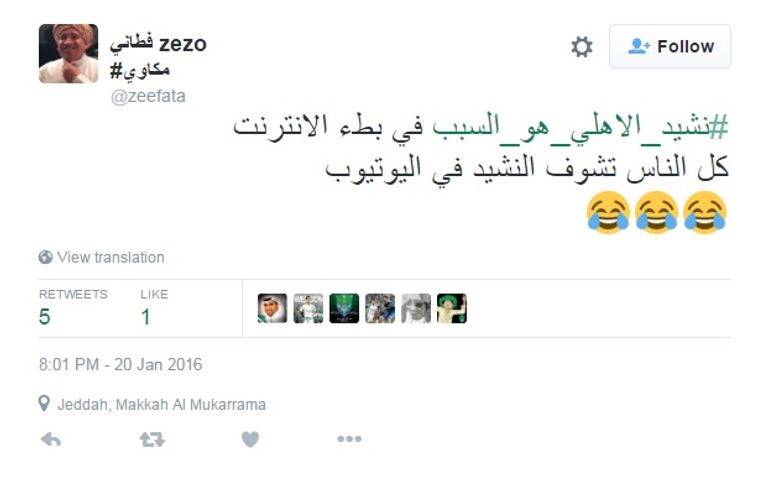 وقال مغرد يدعى فطاني مكاوي: "#نشيد_الاهلي_هو_السبب في بطء الإنترنت كل الناس تشوف النشيد في اليوتيوب".