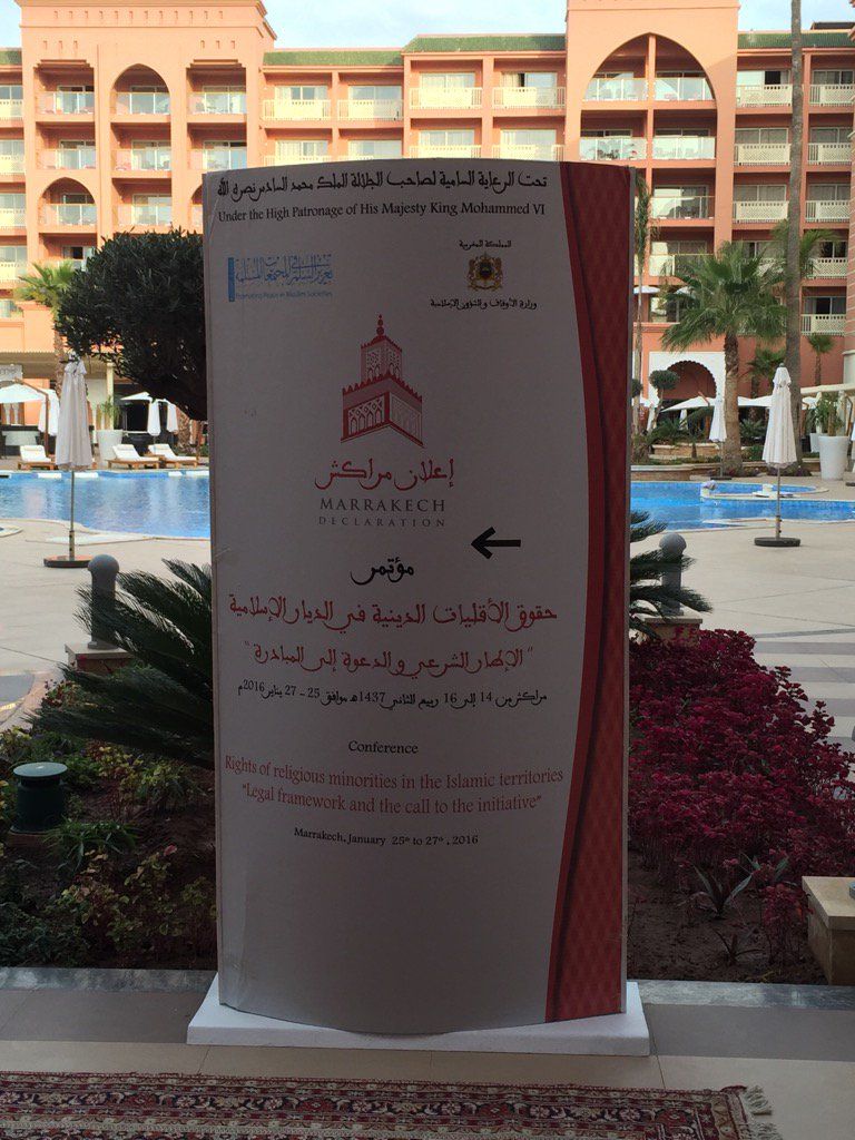 وأوضح البيان أن هذا المؤتمر، الذي يقام بالمغرب في مدينة مراكش، يهتم بمستقبل الإنسانية وحقوق الإنسان وكذلك التنوع الثقافي والديني، ويأتي في سياق تتعرض فيه الأقليات الدينية التي تعيش في بعض البلدان الإسلامية أحيانا وللأسف لممارسات تمس حريتهم الدينية وتتنافى مع التعاليم والمبادئ الأساسية للدين الإسلامي والمواثيق والمعاهدات الدولية.