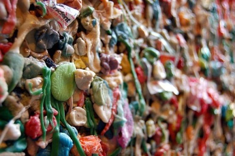 أظهرت صورٌ جدارًا مغطى بالعلكة في إحدى المدن الأمريكية.