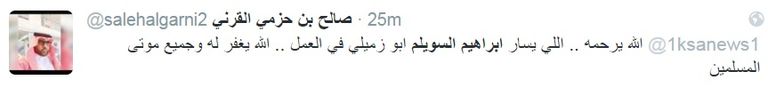 وتداول السعوديون خبر الوفاة على موقع "تويتر" معبّرين عن حزنهم وداعيين له بالرحمة والمغفرة وبدخول الجنة.