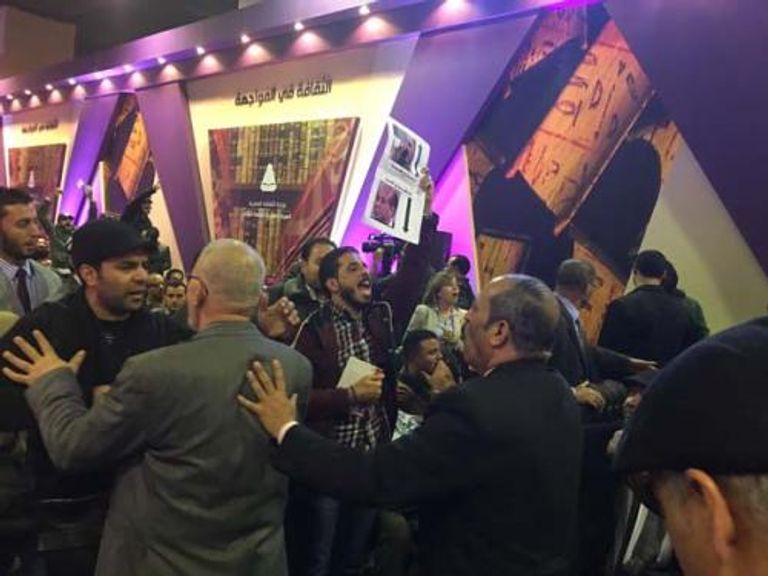 وتعد هذ الواقعة الثانية هي الثانية من نوعها خلال فعاليات الدورة الحالية لمعرض الكتاب، إذ شهدت ندوة "الوفاق الوطني آمال وتطلعات"، الإثنين الماضي، مشادات واشتباكات بين أنصار للقذافي ومعارضين له.
