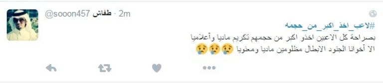 تحت هاشتاق بعنوان (#لاعب_أخذ_أكبر_من_حجمه) تصدر قائمة الهاشتاقات الأكثر نشاطًا في المملكة، كتب مئات السعوديين آراءهم وحددوا أسماء لاعبين يعتقدون أنهم حصلوا على أكثر من حجمهم وعطائهم في الملاعب.