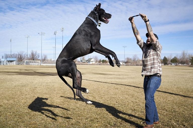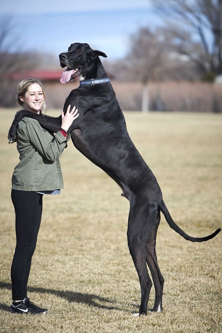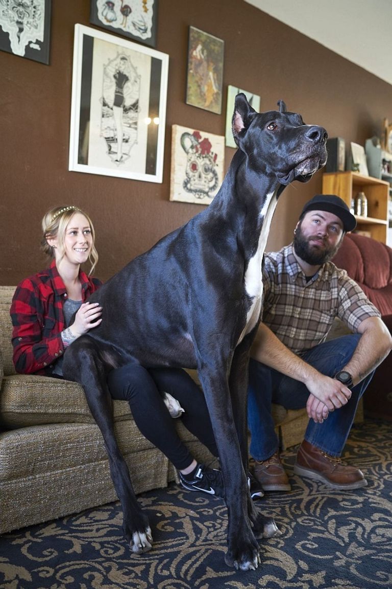 ويقول مالكا الكلب العملاق، نيكولاس هيلمز (25 عاما)، وجيسيكا ويليامز (26 عاما)، إن حجمه يعد ضخما مقارنة بالكلاب من فصيلته، فهو يزن 73 كلغ، وعندما كان في عمر شهرين فقط، بدا وكأنه يبلغ من العمر 6 شهور، أي 3 مرات أكبر من عمره الحقيقي.