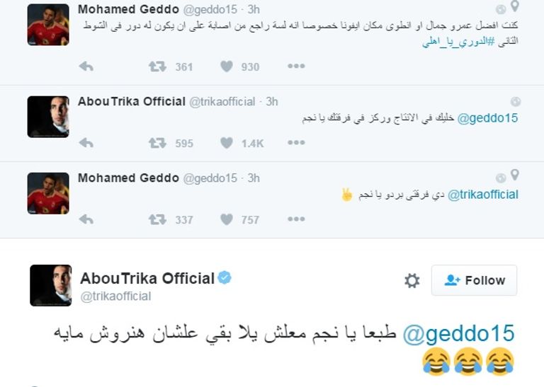 حوار طريف بين لاعبي الأهلي السابقين على موقع التواصل الاجتماعي "تويتر" أثناء مباراة القمة بين الأهلي والزمالك.