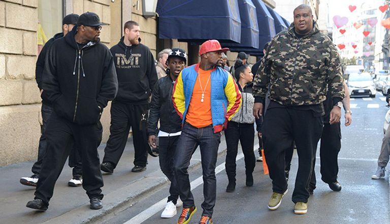 لكن الأمر مختلف بالنسبة للملاكم الأمريكي الشهير فلويد مايويزر جونيور الذي يصطحب معه حارس شخصي عملاق يتجاوز طوله 2 متر، ووزنه قد يصل إلى أكثر من 150 كجم.