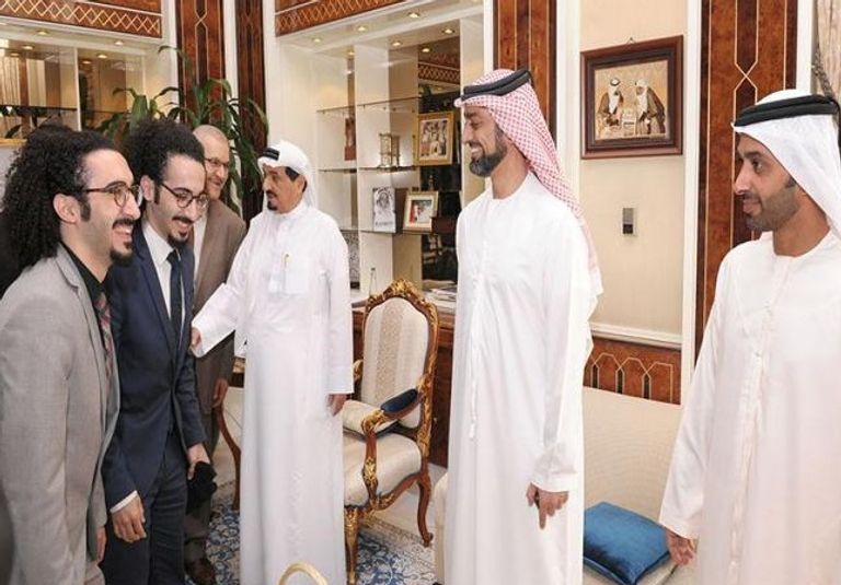 حاكم عجمان يكرم طلبة وخريجي جامعة عجمان للعلوم والتكنولوجيا وأساتذتهم الفائزين بالمركزين الأول والثاني في مسابقة الإمارات للروبوت.