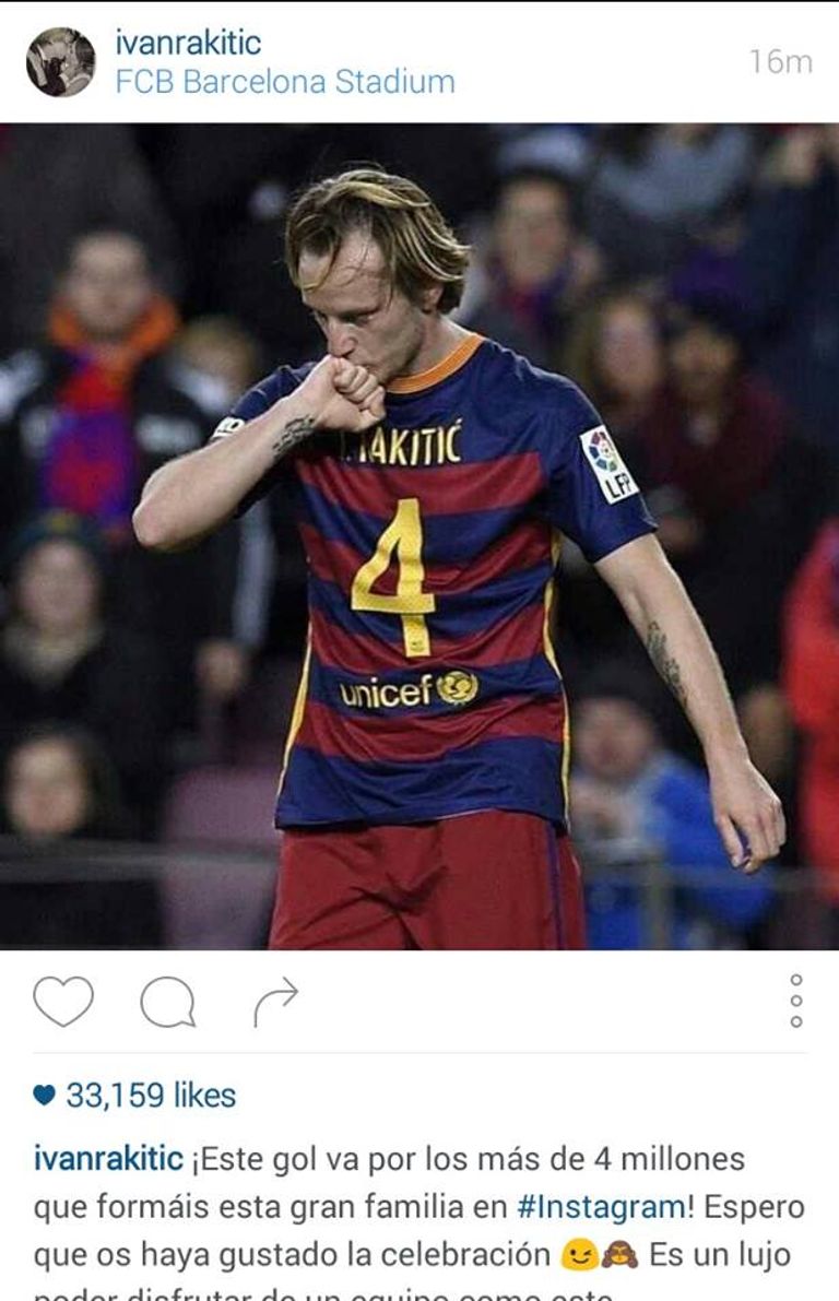 ونشر راكيتيتش على انستقرام صورة له في أثناء الاحتفال بالهدف وعلق عليها قائلًا: "هذا الاحتفال إهداء إلى 4 ملايين متابع، والذين أعتبرهم عائلة كبيرة، أرجو أن تتمتعوا به، إنه شيء رائع أن ألعب لفريق مثل هذا".