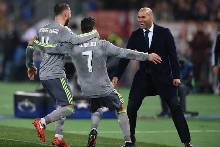 صورة ثلاثي الريال رونالدو، وزميله راموس مع المدرب زيدان خلال مواجهة الفريق الملكي أمام روما الإيطالي سيطرت على اهتمام الصحف المحلية.