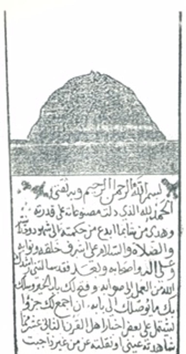 "بسم الله الرحمن الرحيم وبه ثقتي، والحمد لله الذي دلت مصنوعاته على قدرته، وهدى من شاء بما أبدع من حكمته إلى شهود وحدانيته، والصلاة والسلام على أشرف خلقه ونوابه، وعلى آله وأصحابه، وبعد؛ فقد سألتني أرشدك الله من العمل إلى صوابه، وفتح لك باب الخير، وسلك بك ما يوصلك إلى بابه، أن أجمع لك جزءًا يشتمل على بعض أخبار القرن الثاني عشر، مما شاهدته عيني، أو نقلته عن من غير ذي جبت، إلى ذلك مستمدًا من فيض الملك الوهاب سلوك الصواب، إنه ولى ذلك وبه الإعانة على جميع ما هو مالك".