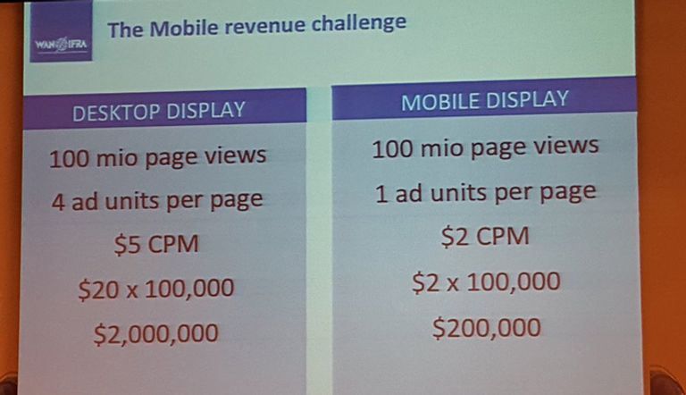 وعن عائدات الصحف تحدث توماس جاكوب رئيس العمليات في «وان إفرا» حيث قال: "إن العائدات السنوية للصحف المطبوعة في العالم بلغت 179 مليار دولار بتراجع ١% فقط عن السنة الفائتة"، فيما "بلغت عائدات مبيع الجرائد المطبوعة ٩٢ مليار دولار في حين سجلت الإعلانات أرباحًا بقيمة ٨٧ مليار دولار". إلا أنه دق ناقوس الاهتمام لتطبيقات الهواتف النقالة إذ بلغت نسبة استخدام الهواتف الذكية في الاطلاع على الأخبار نسبة وصلت إلى 79%، وقال جاكوب: "سيشهد العام ٢٠١٦ تناميًا الاتكال على الاعلام الاجتماعي خصوصًا مع وجود ٢٠٠ مليون مستخدم لسناب شات على سبيل المثال".