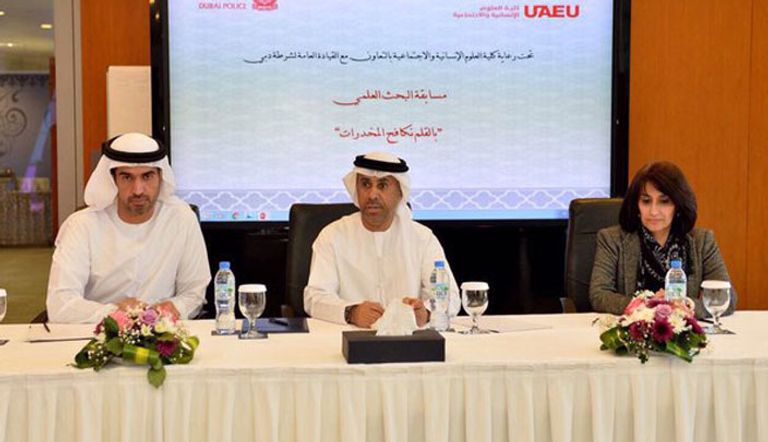 أطلقت القيادة العامة لشرطة دبي بالتعاون مع جامعة الإمارات العربية المتحدة مسابقة "بالقلم نكافح المخدرات"، التي تقدمها شرطة دبي لطلبة كلية العلوم الإنسانية والاجتماعية، خلال المؤتمر الصحفي المنعقد يوم الاثنين 15/2/2016 بقاعة الأعمال بالحرم الجامعي.