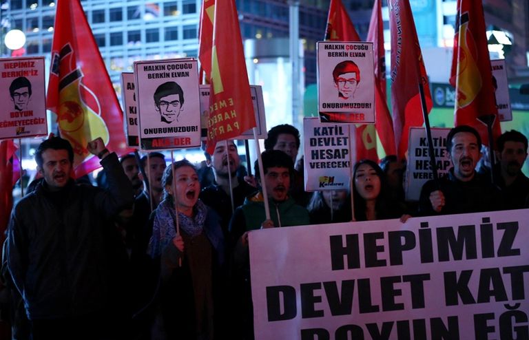 متظاهرون تجمعوا في إسطنبول لإحياء ذكرى فتى في الخامسة عشرة قُتل قبل سنتين ما غذى الحراك الاحتجاجي ضد نظام الرئيس التركي رجب طيب أردوغان