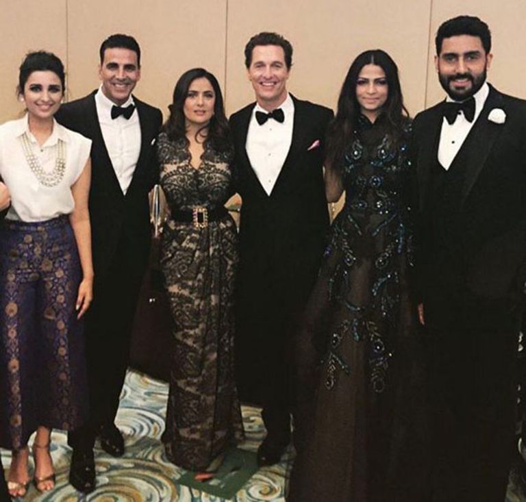 وظهرت صور جمعت نجمي هوليوود الأمريكي ماثيو ماكهوني والمكسيكية سلمى حايك ومعهم نجوم الهند أبهتشيك باتشان وآكشاي كومار وبارنيتي شوبرا، والباكستاني علي ظفر.
