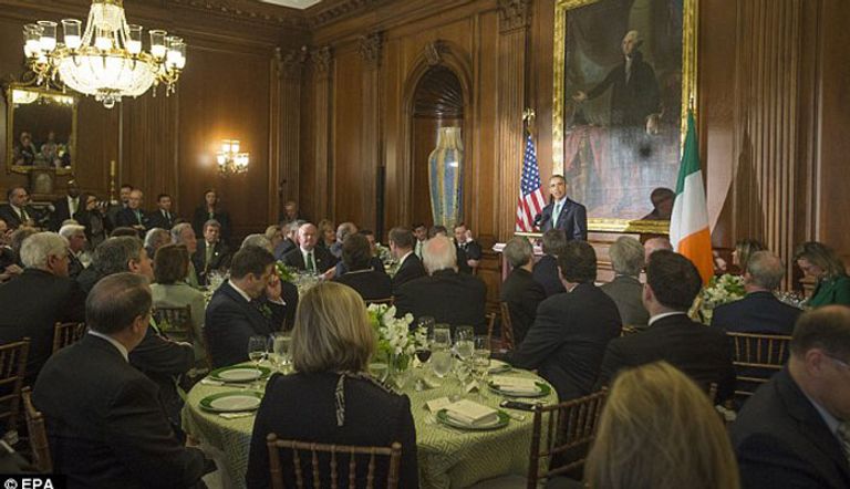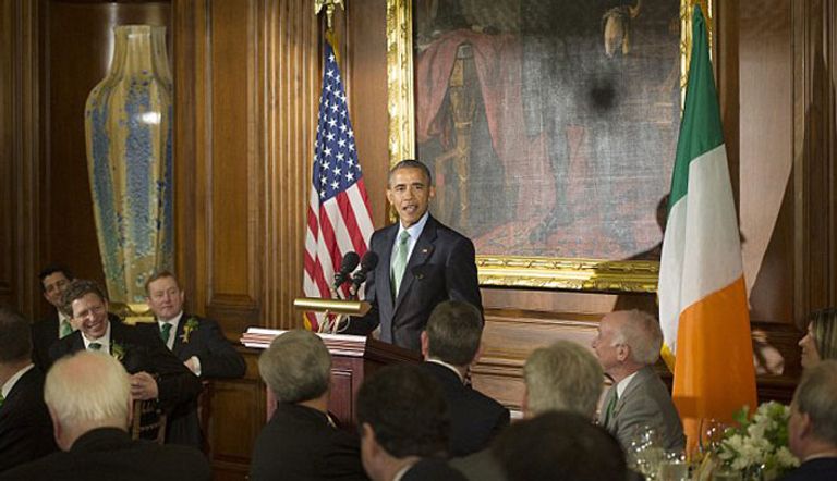 وقال أوباما أثناء زيارة رئيس الوزراء إلى المكتب البيضاوي حيث بدأ احتفالات عيد القديس باتريك في البيت الأبيض: "هذه مناسبة سنوية، وإحدى مناسباتي المفضلة، وتسمح لي بعرض تراثي الأيرلندي"، في إشارة إلى أسلاف والدته.