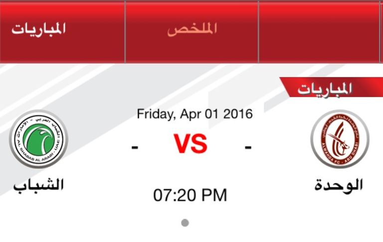 لجنة دوري المحترفين بالاتحاد الإماراتي وضعت على تطبيقها الخاص بالأجهزة المحمولة جدول نهائي كأس الخليج العربي، بين الوحدة والشباب.