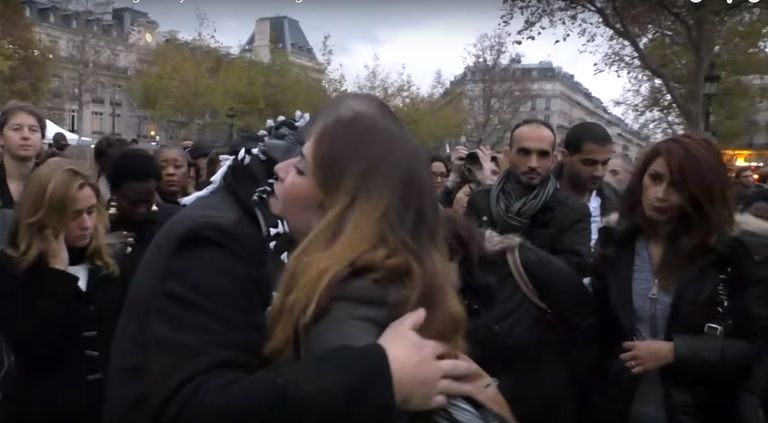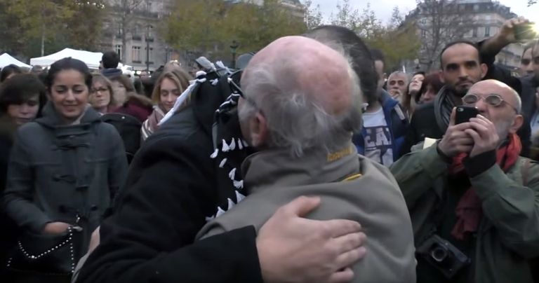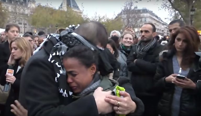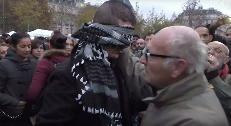 فيديو..فرنسيون يعانقون مسلمًا معصوب العينين في باريس
