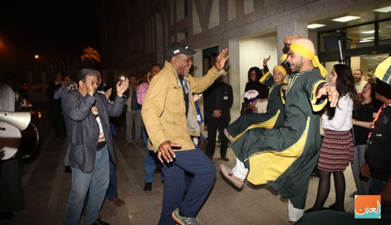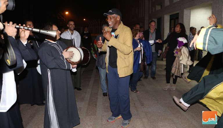 الفنان الأمريكي داني جلوفر تلقى استقبالًا حارًّا من فرقة فنون شعبية في مطار الأقصر الدولي استعدادًا لتكريمه
