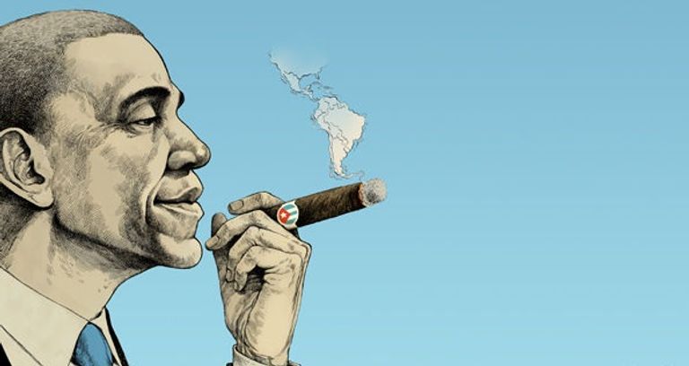 زيارة الرئيس الأمريكي باراك أوباما اليوم إلى كوبا، خطوة مرحب بها على الطريق الصحيح، لرأب الصدع، والتقارب المثمر مع الحديقة الخلفية لبلاده في أمريكا اللاتينية التي يتواجد بها لاعبون آخرون، ولكن دبلوماسيته، تترك الخيار لخلفه، رغم خطورة أن يسلك مسارا مختلفا، وهو ما يتجسد في تهديد واضح يأتي من المرشح الجمهوري دونالد ترامب، بحسب مجلة "إيكونوميست" البريطانية.