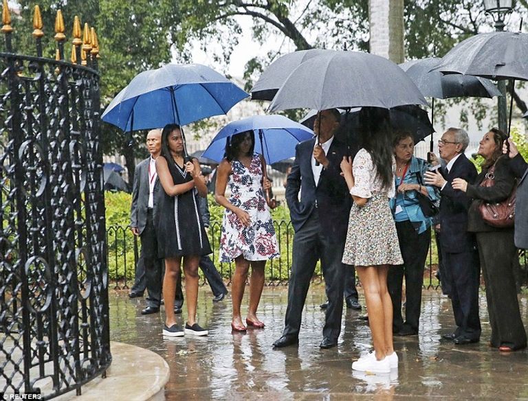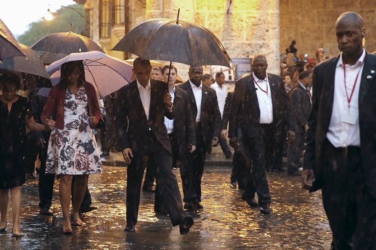 موجة من الطقس السيء والأمطار الغزيرة كانت في استقبال الرئيس الأمريكي باراك أوباما وأسرته لدى وصولهم إلى كوبا في زيارة تاريخية