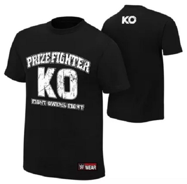 ويحمل القميص الجديد اسم كيفين أوينز وشعاره (Fight Owens Fight) بالإضافة إلى اسم شهرته (Prizefighter)، ولونه أسود. كما يحمل شعارا صغيرا أسفله لمؤسسة المصارعة الحرة العالمية الترفيهية.