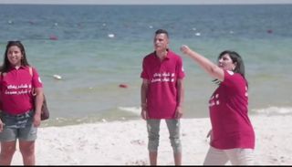 وظهرت عبير موسي على شاطئ البحر خلال مباراة لكرة الطائرة وهي ترتدي قميصا حمل شعار "شباب يفكر.. شباب مسؤول".