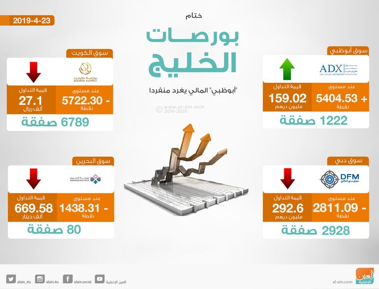 "أبوظبي" المالي يغرد منفردا ختام بورصات الخليج