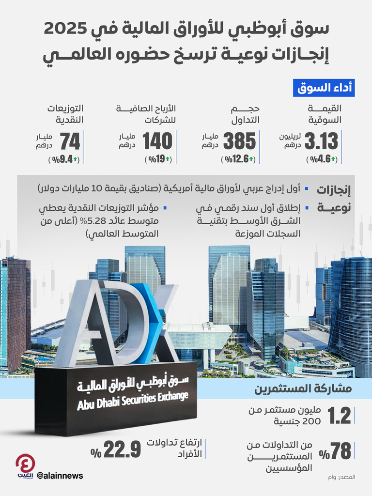 «أبوظبي للأوراق المالية» في 2025.. إنجازات نوعية رسّخت حضوره العالمي