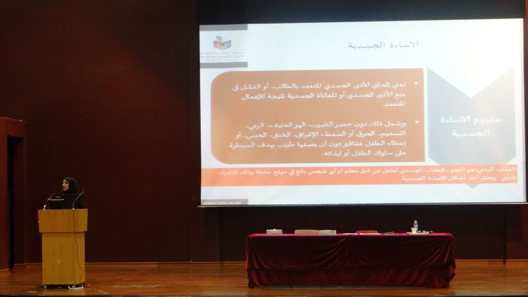 واستعرضت ورش العمل المهام والمسؤوليات التي تقع على عاتق مديري المدارس و كافة موظفي المدارس لضمان حماية الطلبة من جميع الأفعال أو جوانب التقصير التي تُمثِّل أي نوع من أنواع الإساءة أو تمثِّل استغلالاً أو إهمالاً أو تنمّرا مثل إعطاء الأولوية القصوى لحماية الطلبة واتخاذ إجراءات فوريّة عند الشك في حالات إساءة للطلبة أو إهمالهم وضمان اطلاع وفهم كافة موظفي المدرسة على الإجراءات الموحدة للتبليغ عن حالات الإساءة أو الإهمال. كما أوضحت السياسة دور موظفي المدارس وقادتها في نشر ثقافة حماية الطفل وتعزيز قدرة الطلبة على الإبلاغ بأمان عن مخاوفهم بشأن تعرضهم للإساءة و/أو الإهمال دون خوف من التعرض للانتقام أو العقاب.