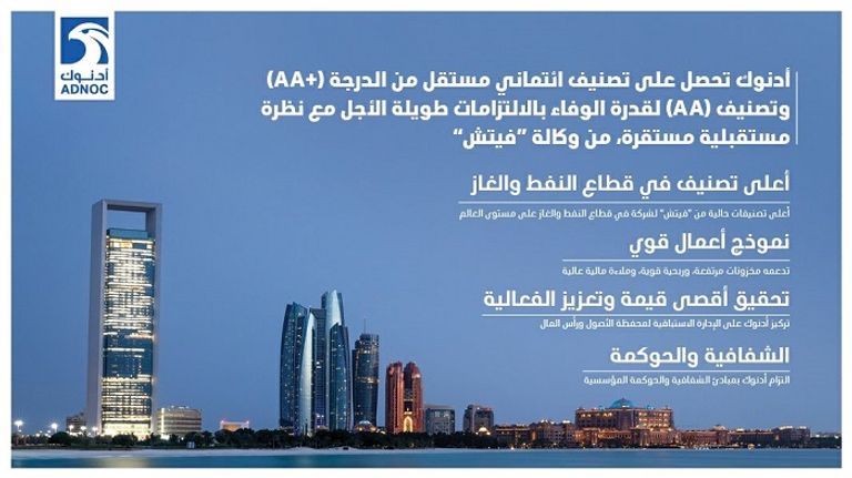 "فيتش" العالمية تمنح "أدنوك" تصنيفا ائتمانيا مستقلا من الدرجة +AA