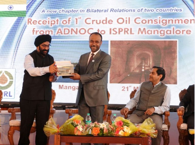 وكان الدكتور سلطان بن أحمد الجابر، وزير دولة الرئيس التنفيذي لشركة بترول أبوظبي الوطنية "أدنوك" ومجموعة شركاتها، ودارميندرا برادان، وزير البترول والغاز الطبيعي الهندي، قد شهدا في أبوظبي مؤخراً عملية تحميل الشحنة الأولى من النفط الخام، التي وصلت بأمان إلى مدينة مانجلور، بعد رحلة قصيرة استغرقت ستة أيام.