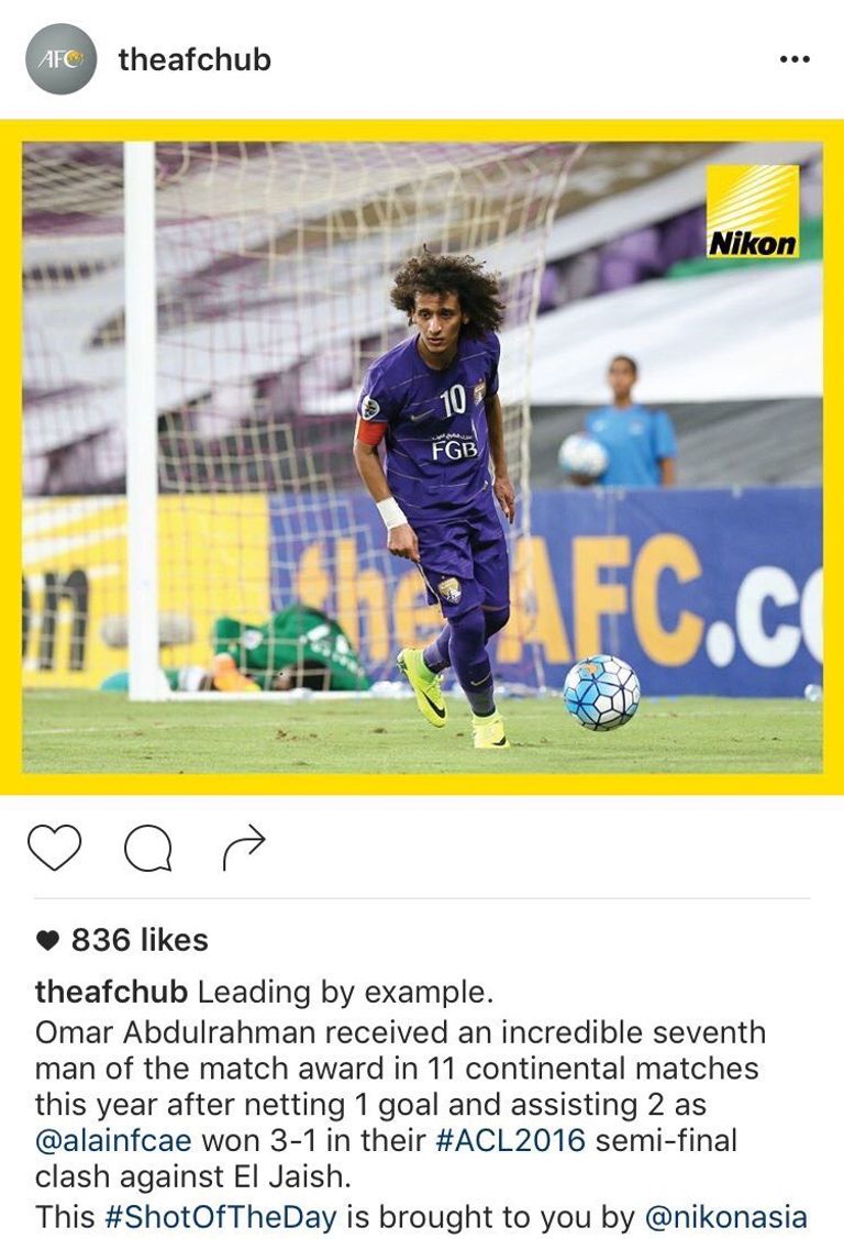 أشاد الإتحاد الآسيوي لكرة القدم، بلاعب نادي العين ومنتخب الإمارات، عمر عبد الرحمن "عموري"، وذلك بسبب تألقه القاري.