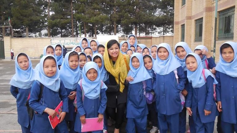 (اللاجئة الأفغانية مع طالبات إحدى المدارس)