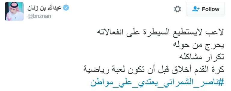 "اعتداء الشمراني" يشعل معركة على"تويتر"