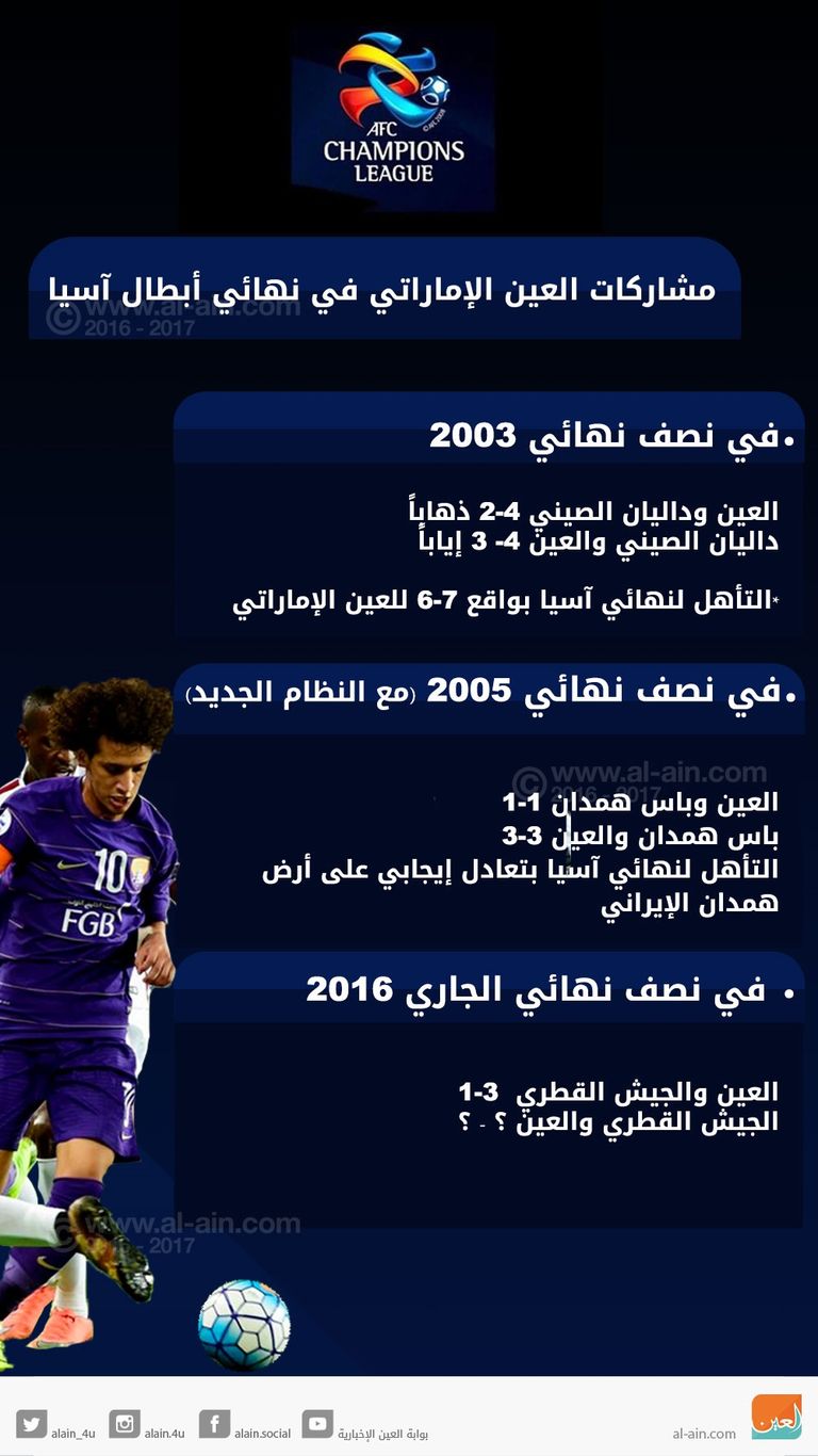 فهل يكرر العين فوزه في لقاء الذهاب على الجيش القطري (3-1)، ليحقق أول انتصار له في لقاءات الإياب في تاريخ مشاركاته بنصف النهائي الآسيوي؟