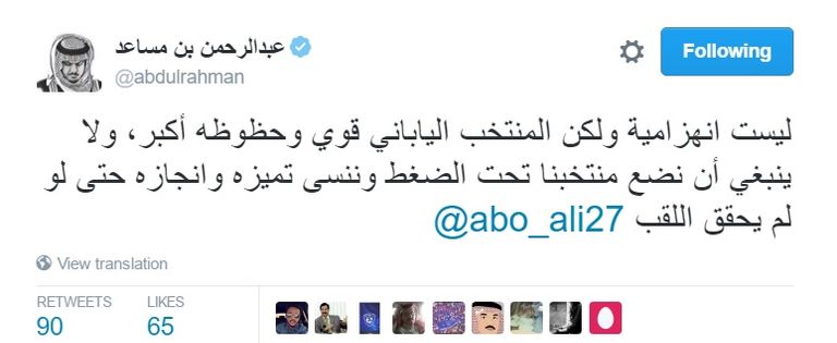 وشدد بن مساعد عبر حسابه الشخصي على موقع التواصل الإجتماعي "تويتر"، على ضرورة تخفيف الضغوط عن المنتخب، وعدم نسيان ما حققه من إنجاز وآداء مميز.
